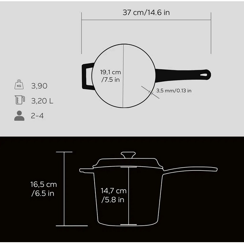 Емайлиран чугунен дълбок тиган за сос с трислоен емайл Ø18cм