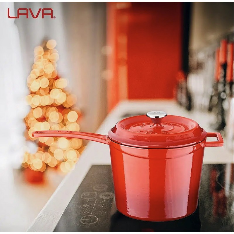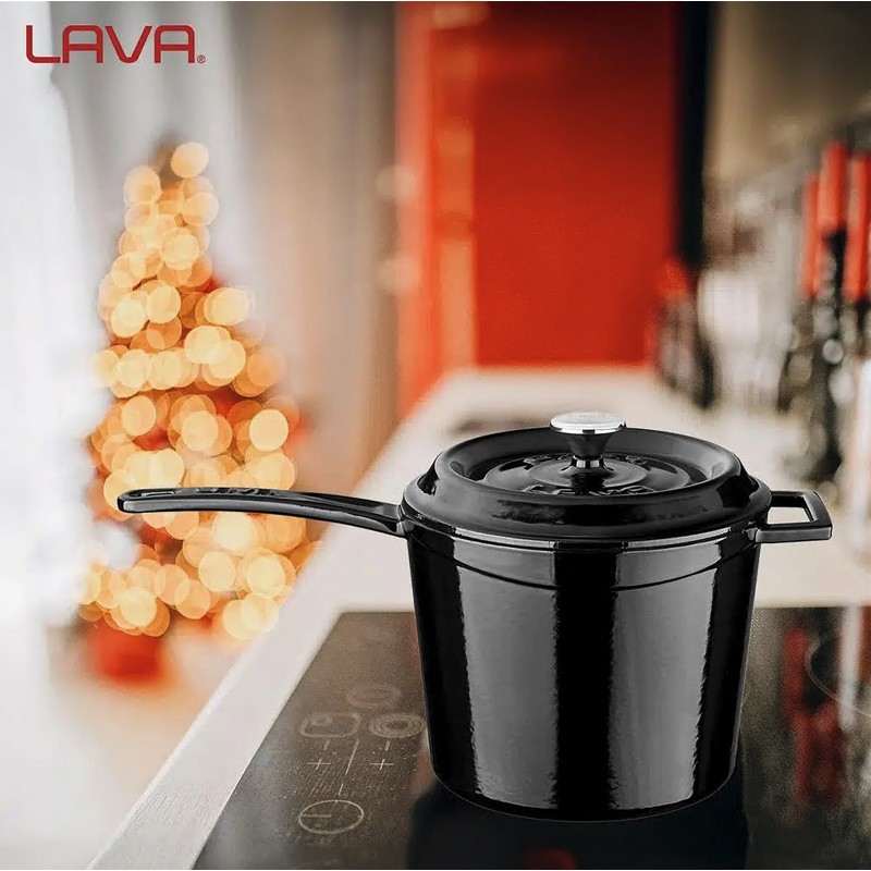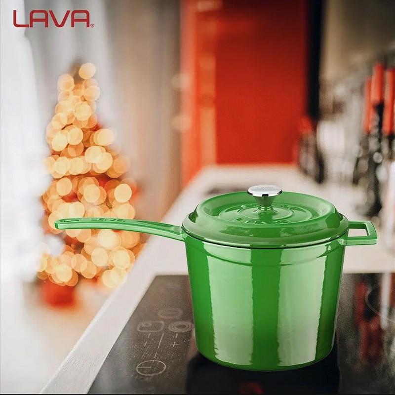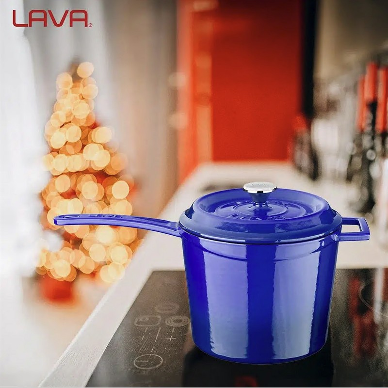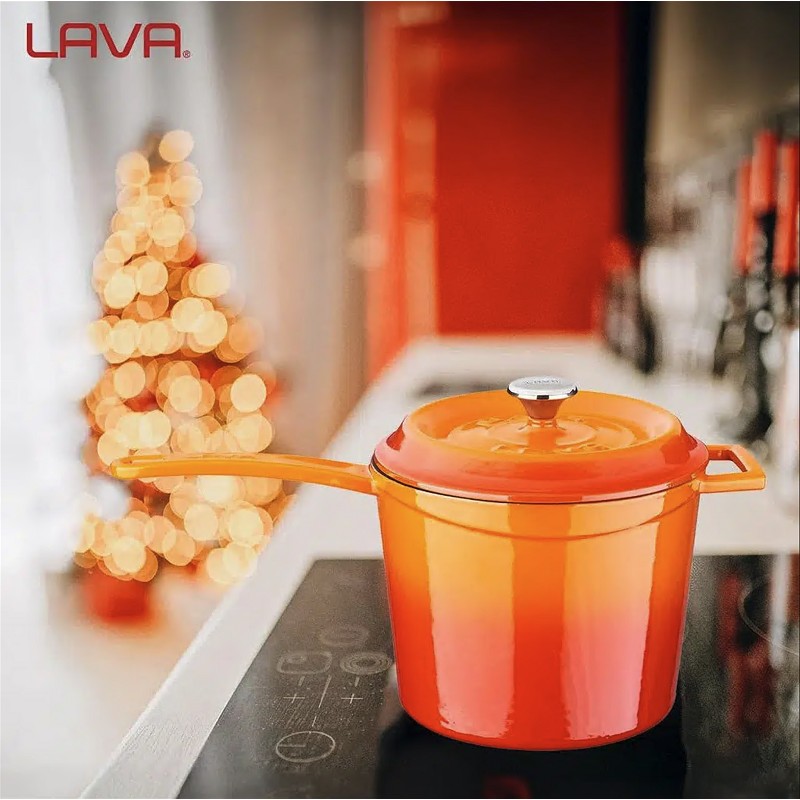 Чугунена дълбока касерола с емайлово покритие за приготвяне на сос.