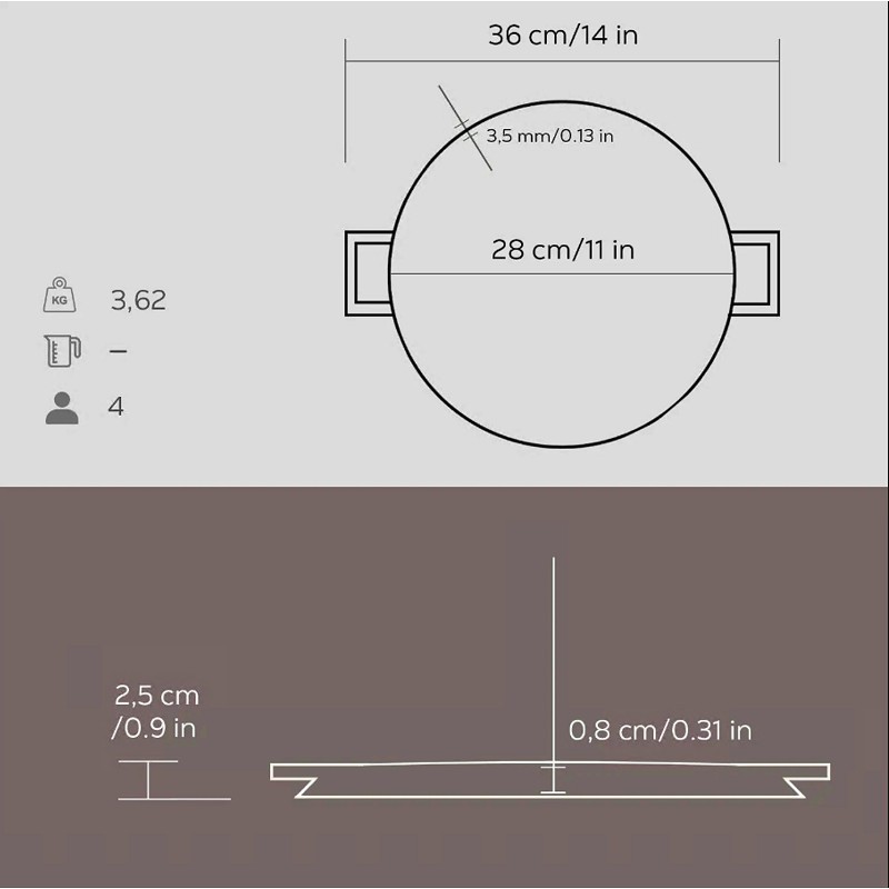 Кръгла двустранна чугунена плоча ,оребрена и гладка страна с двуслоен емайл (Ø)28cm