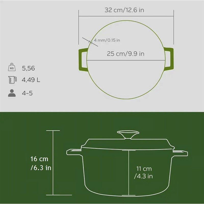 Кръгла емайлирана чугунена тенджера с трислоен емайл Ø24cm