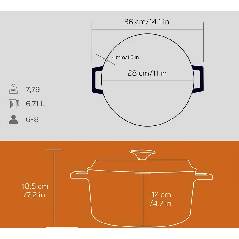 Емайлирана чугунена кръгла тенджера - трислоен емайл.