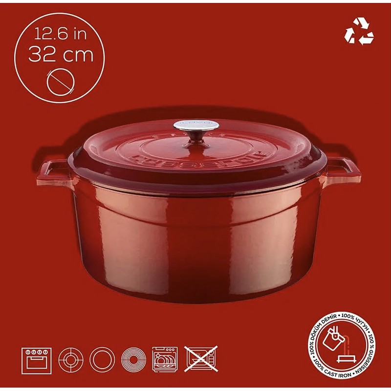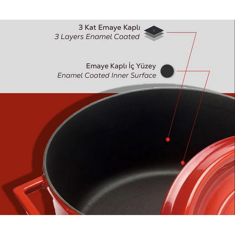 Емайлирана чугунена кръгла тенджера - трислоен емайл.
