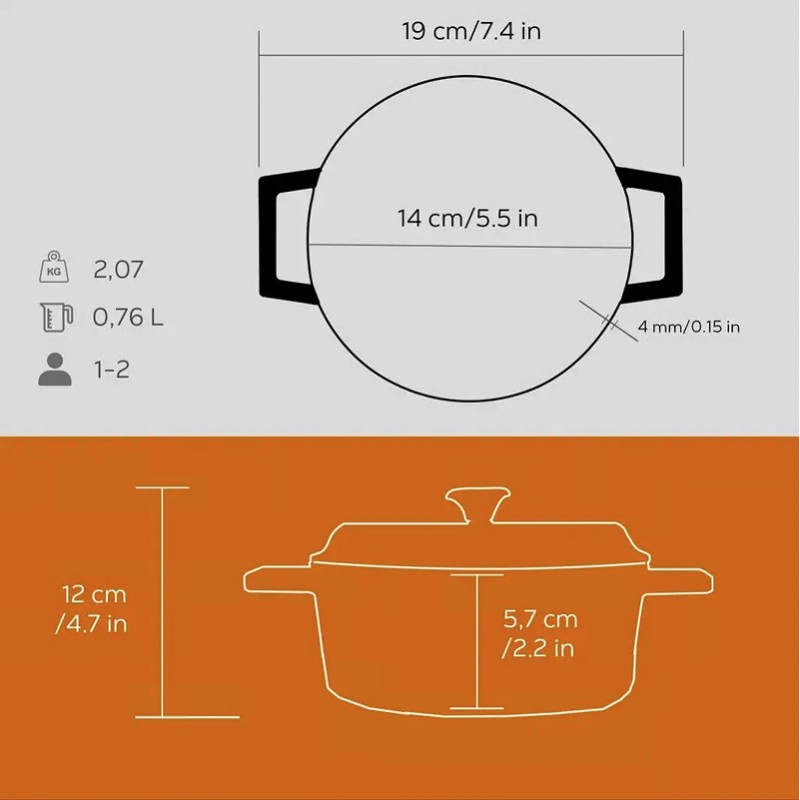 Емайлирана кръгла чугунена тенджера - трислоен емайл Ø14cm
